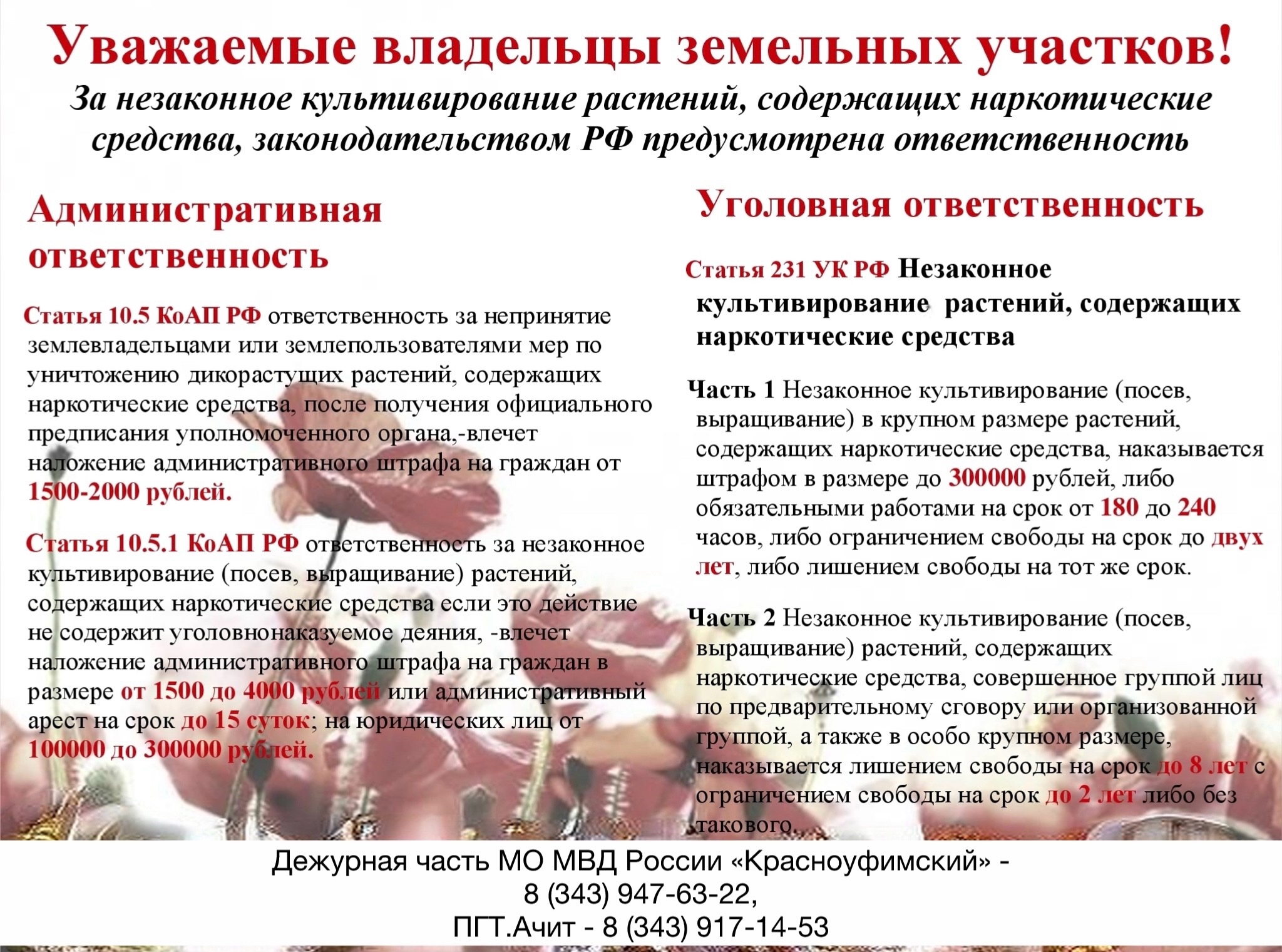 Лифлет "Уголовная ответственность за преступления, связанные с незаконным оборотом наркотиков" Скачать