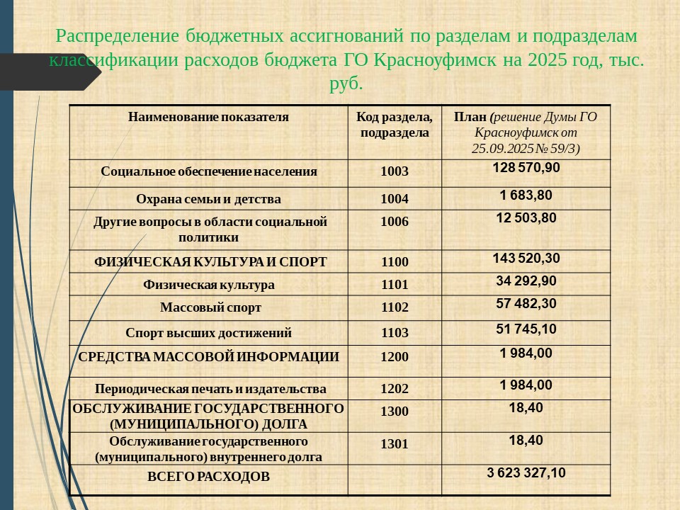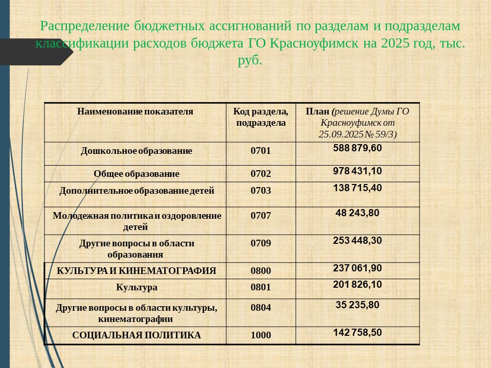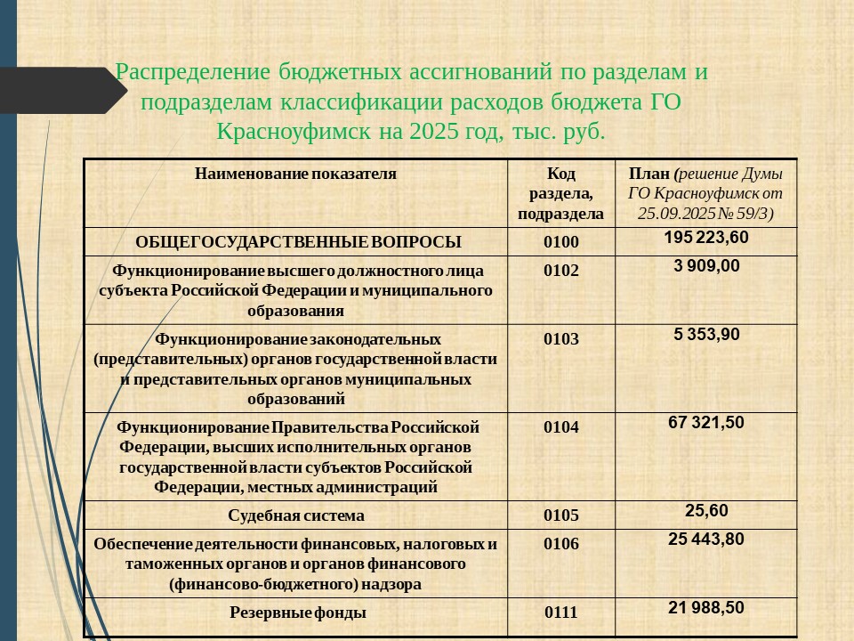 Основные параметры бюджета на 2025 год, расходы по разделам и подразделам