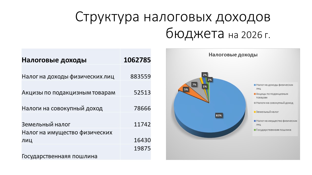 Структура налоговых доходов бюджета на 01.01.2026