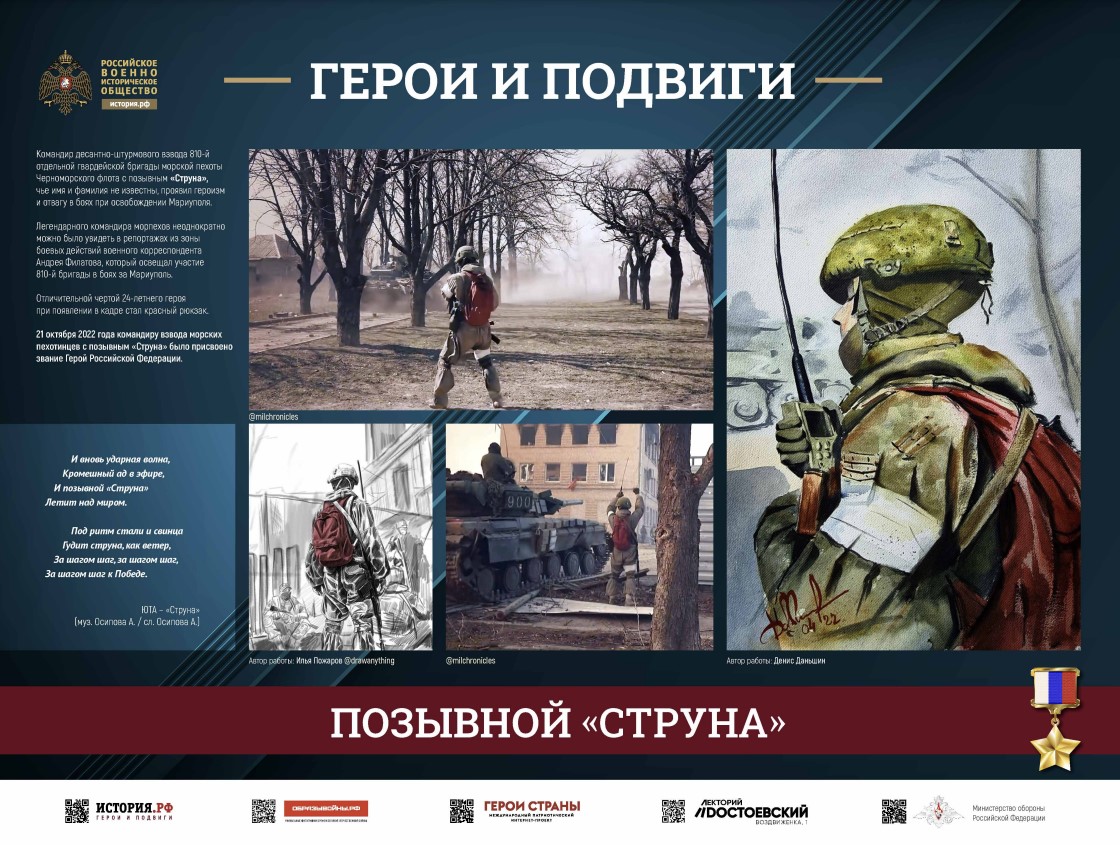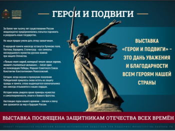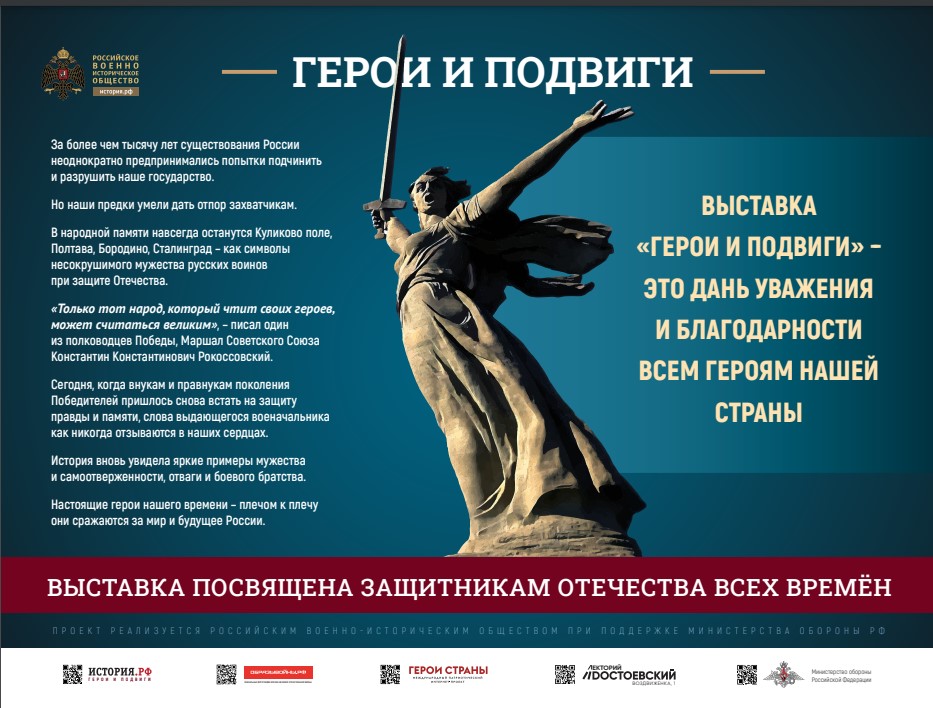 Фотовыставка «ГЕРОИ И ПОДВИГИ» подготовлена Российским военно-историческим обществом и в лицах отражает основные исторические вехи развития страны