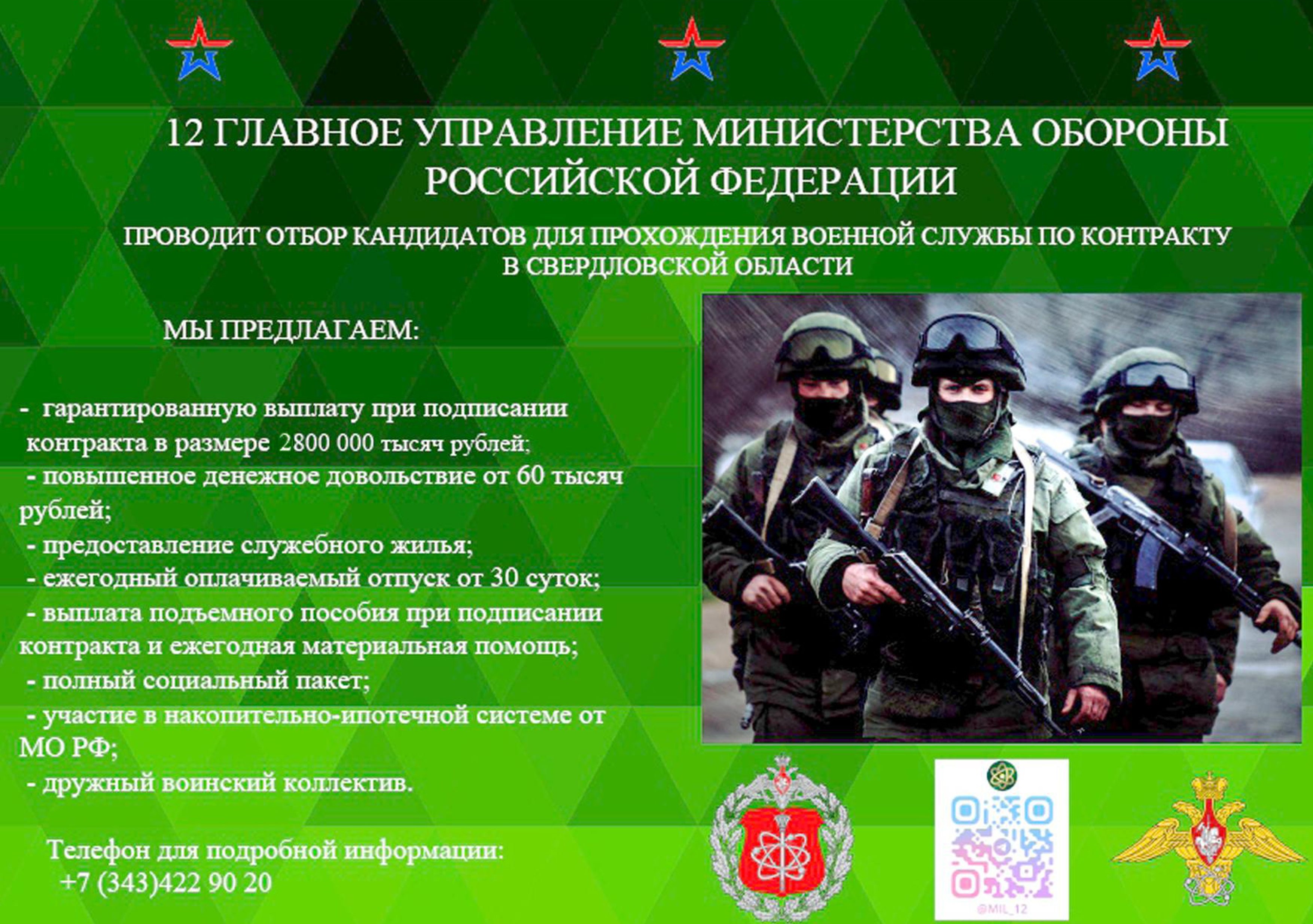 12 Главное Управление Минобороны приглашает граждан заключить контракт в войсковой части: 40274, города Лесной (Свердловская область).