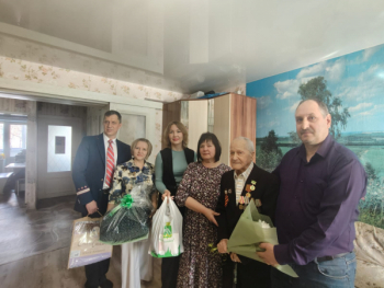 Единственного оставшегося в живых в городе участника Великой Отечественной войны приехали поздравить начальник отдела по социальной политике, молодежным программам и туризму Администрации ГО Красноуфимск Волкова В.А., начальник Управления социальной политики №3 Чухарева Т.А., директор ГАУСО СО КЦСОН г. Красноуфимск Шиблева Ю.В., заместитель начальника локомотивного депо по кадрам Ведиянцев А.В., председатель совета ветеранов локомотивного депо Комягин С.Г.