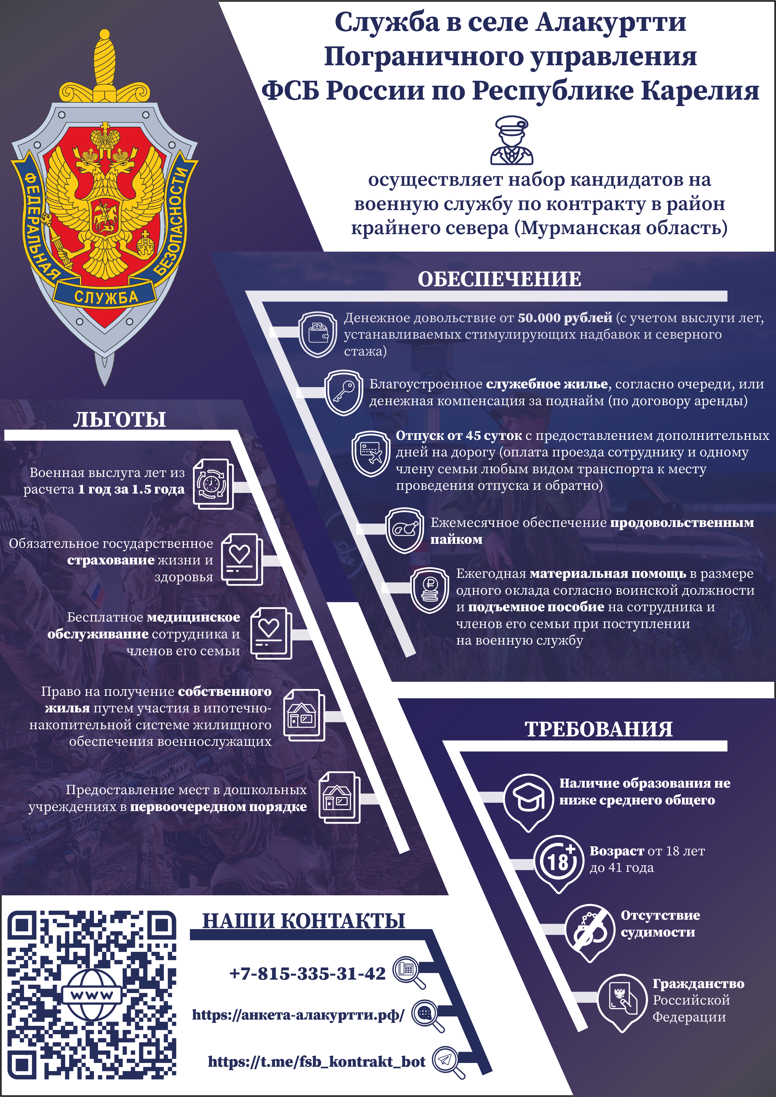 Информация о порядке и условиях прохождения службы размещена на сайте: анкета-алакуртти.рф;